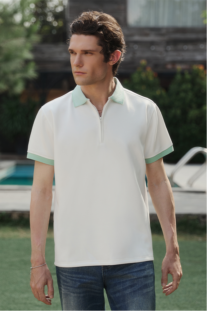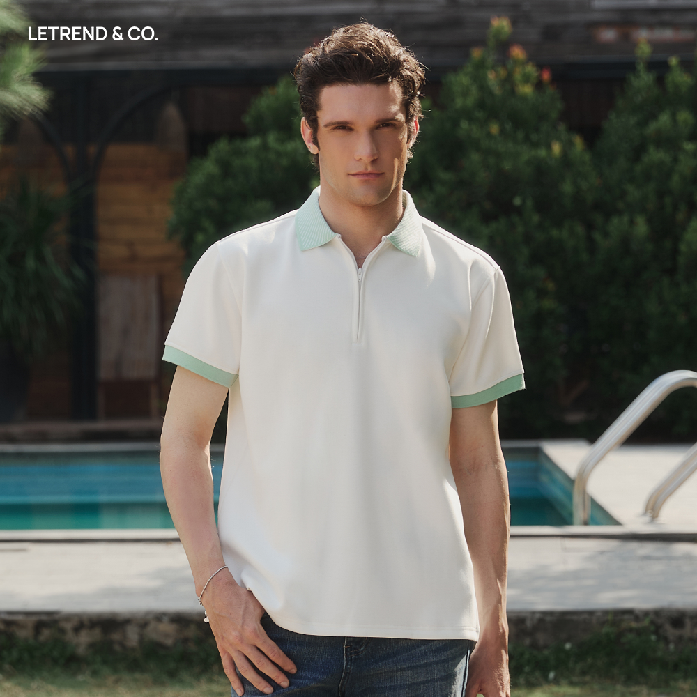 ÁO POLO NAM LETREND CỔ DÂY KÉO - REGULAR FIT - WHITE & MINT