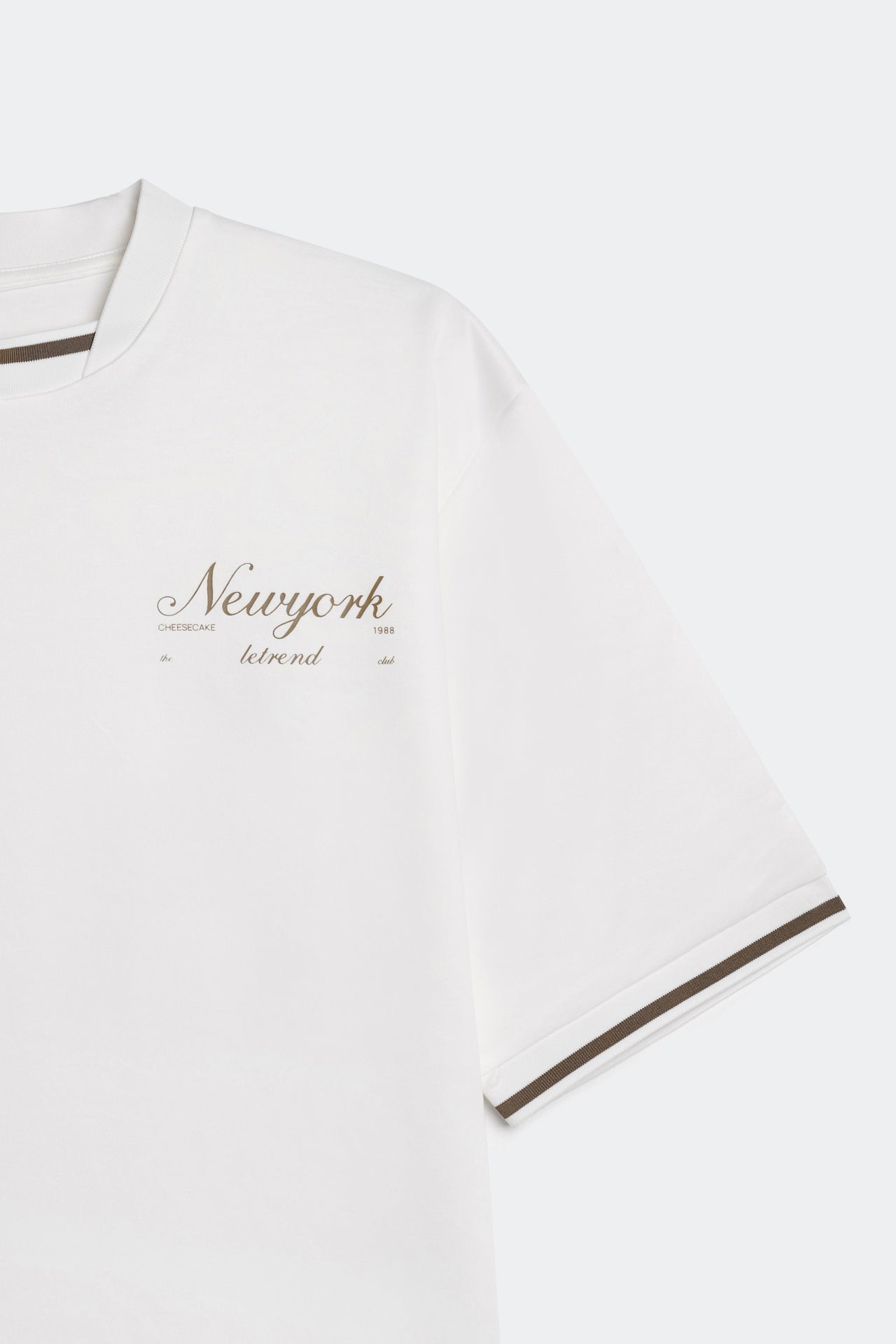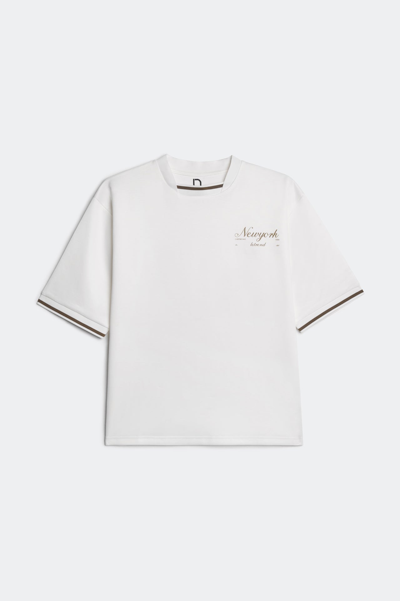 ÁO THUN NAM LETREND BASIC NEW YORK - BOXY - WHITE thiết kế ống tay lỡ mang hơi hướng trẻ trung, hiện đại, được làm nổi bật bằng hình in graphic màu nâu ở ngực trái với kỹ thuật in lụa. Viền cổ áo độc đáo, đồng bộ với bo tay. Chất vải dày dặn, giữ form, mặt vải thoáng mát.